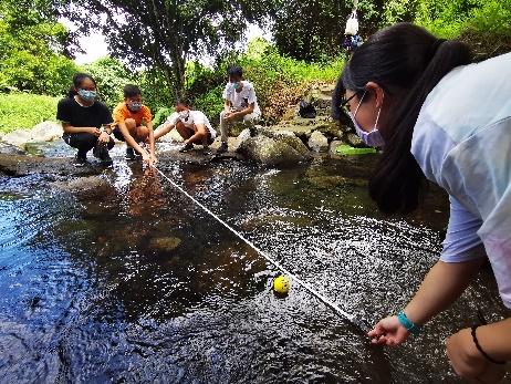 Geography students conducting field studies along the lively Lam Tsuen River and Tung Chung River – from measuring river properties, taking a refreshing bath break and finding harmony between study and serenity.